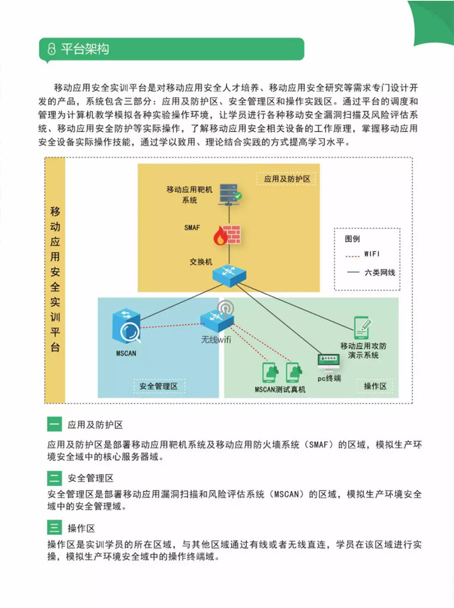 移动应用安全实训平台着重培养移动应用安全的知识与技能,提升移动应用安全意识,普及移动应用安全知识。除了漏洞扫描、渗透测试、移动应用防护等教学功能,平台还带有移动应用服务器端和客户端,能定制各种类型移动应用风险评估和应用防护演练,通过组织实训提升学生学习兴趣,加快推进移动应用安全产学研结合,将实训的成果转化为现实生产力。